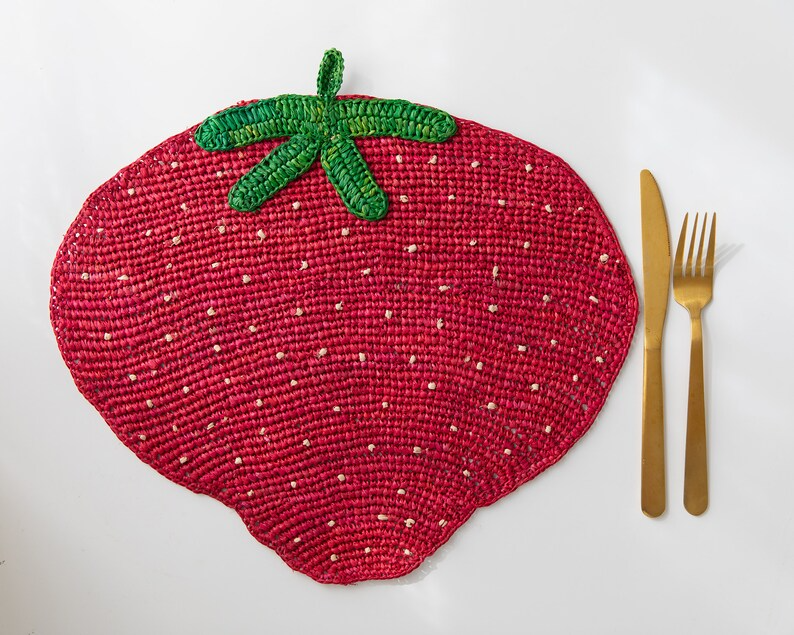 Strawberry Placemats β 14β Hand-Crocheted Raffia Palm, Artisan Summer Table Decor